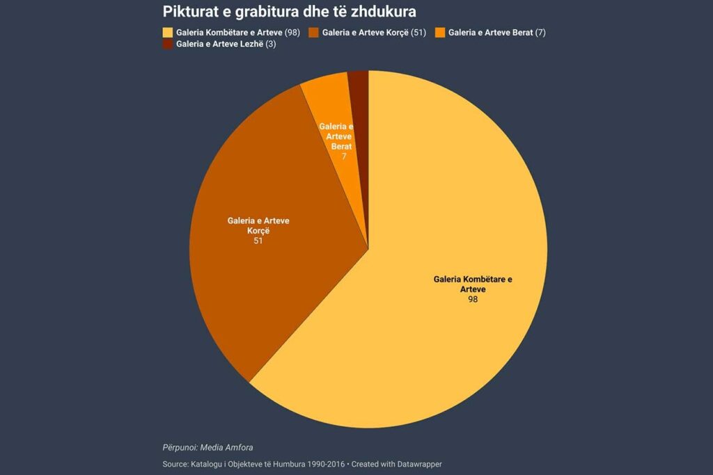 Nga galeritë e artit në Shqipëri janë zhdukur 159 vepra, piktura të Vangjush Mios dhe të tjerë kolosëve që i mungojnë identitetit kombëtar. Vetëm nga Galeria Kombëtare e Arteve u zhdukën pa gjurmë 98 vepra dhe autoritetet nuk kanë zbuluar asnjë prej tyre, që sipas referencave të tregut kushtojnë disa miliona euro.