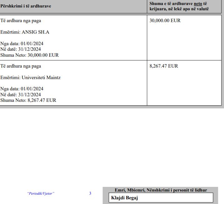 Por, pas reagimit të Presidencës, kreu i grupit parlamentar të PD, Gamzent Bardhi, ka publikuar edhe provat që tregojnë se djali i Presidentit Bajram Begaj është i punësuar në kompaninë e sigurimeve ANSIG, me një pagë 30 mijë euro në vit.