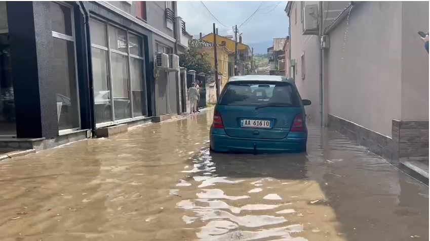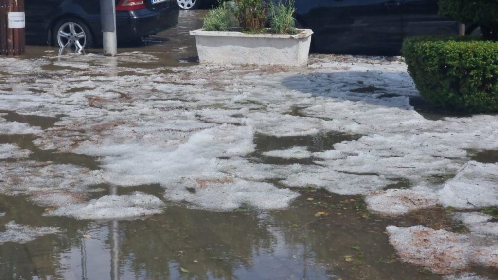 Stuhia e fortë ka bërë që disa nga rrugët e qytetit të zbardhen nga breshëri duke bllokuar pusetat dhe duke shkaktuar përmbytje të rrugëve.