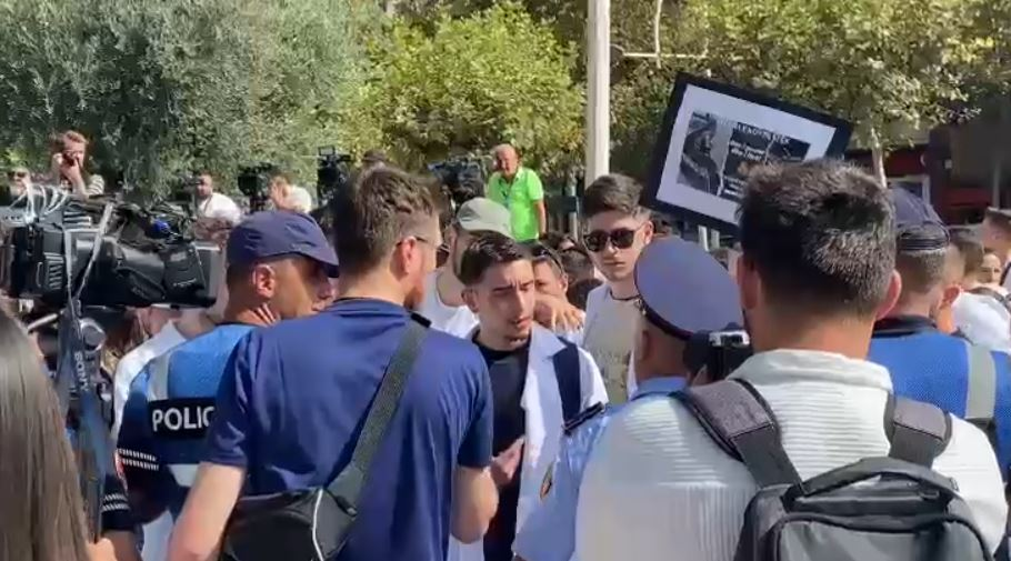 Gjatë protestës studentët janë penguar edhe nga forcat e policisë, të cilat në disa momente nuk i kanë lejuar ata.