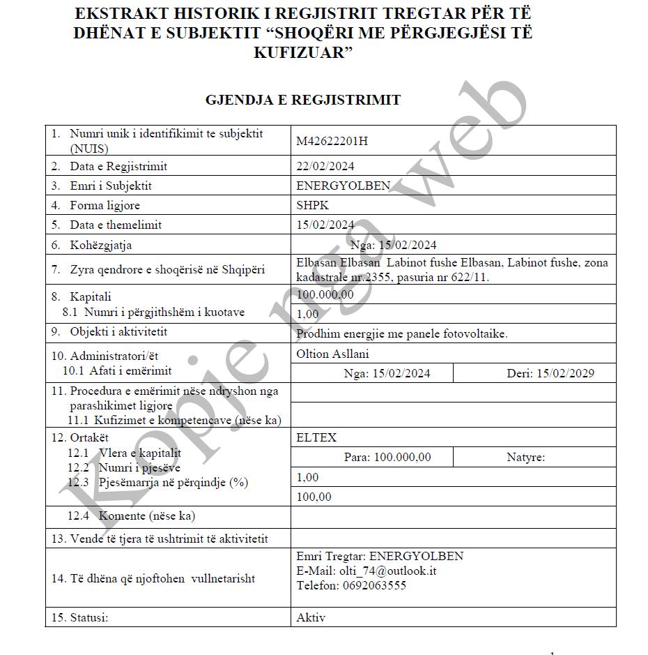 Së pari, ‘ENERGYOLBEN’ është në pronësi të kompanisë ELTEX shpk e cila ka pronar Arben Asllanin me të vëllanë.
