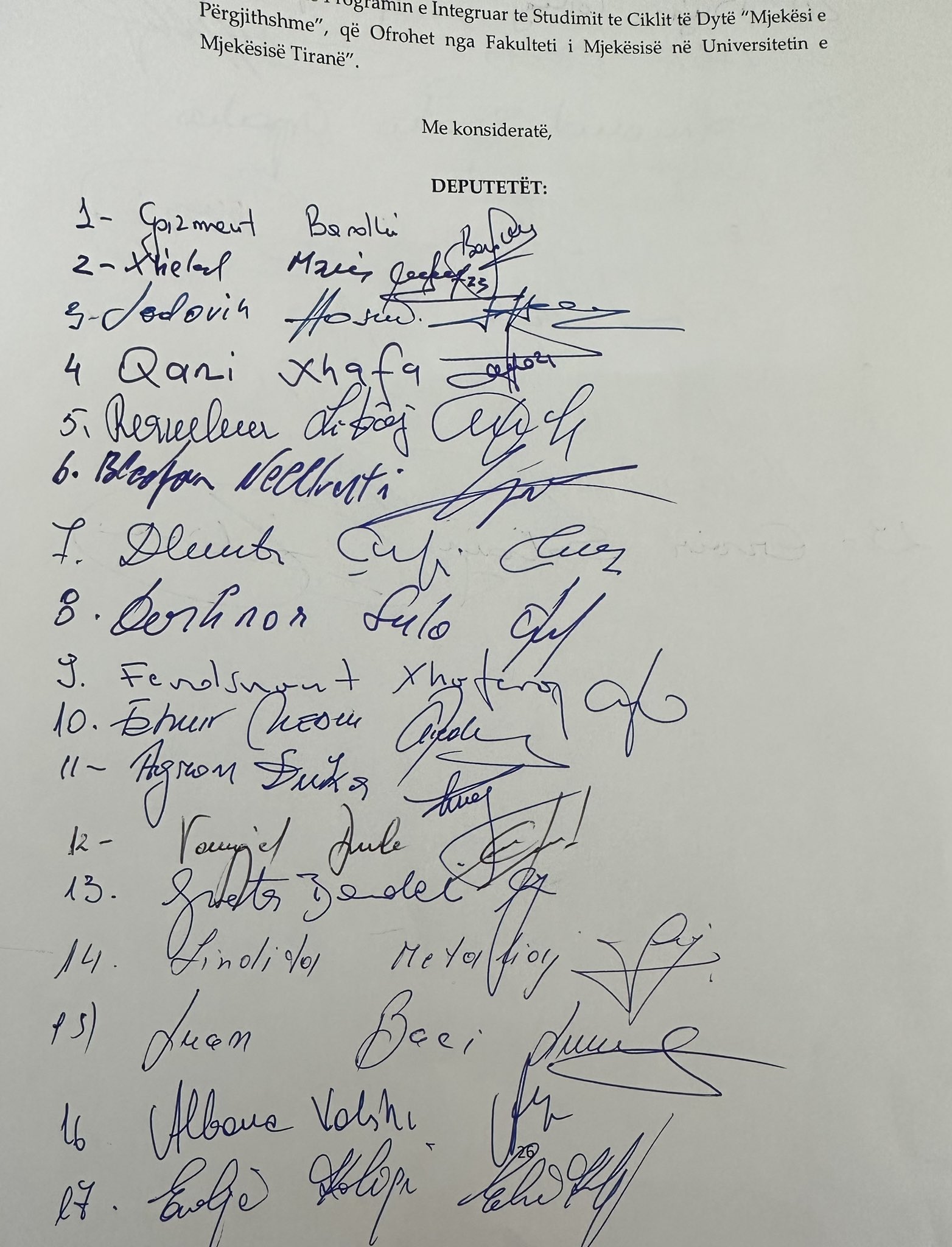 Deputetët e Partisë Demokratike kanë firmosur një kërkesë të përgatitur nga studentët e mjekësisë për të kundërshtuar në Gjykatën Kushtetuese ligjin e Qeverisë që nuk pajisë për 5 vite me diplomë mjekët e rinj.