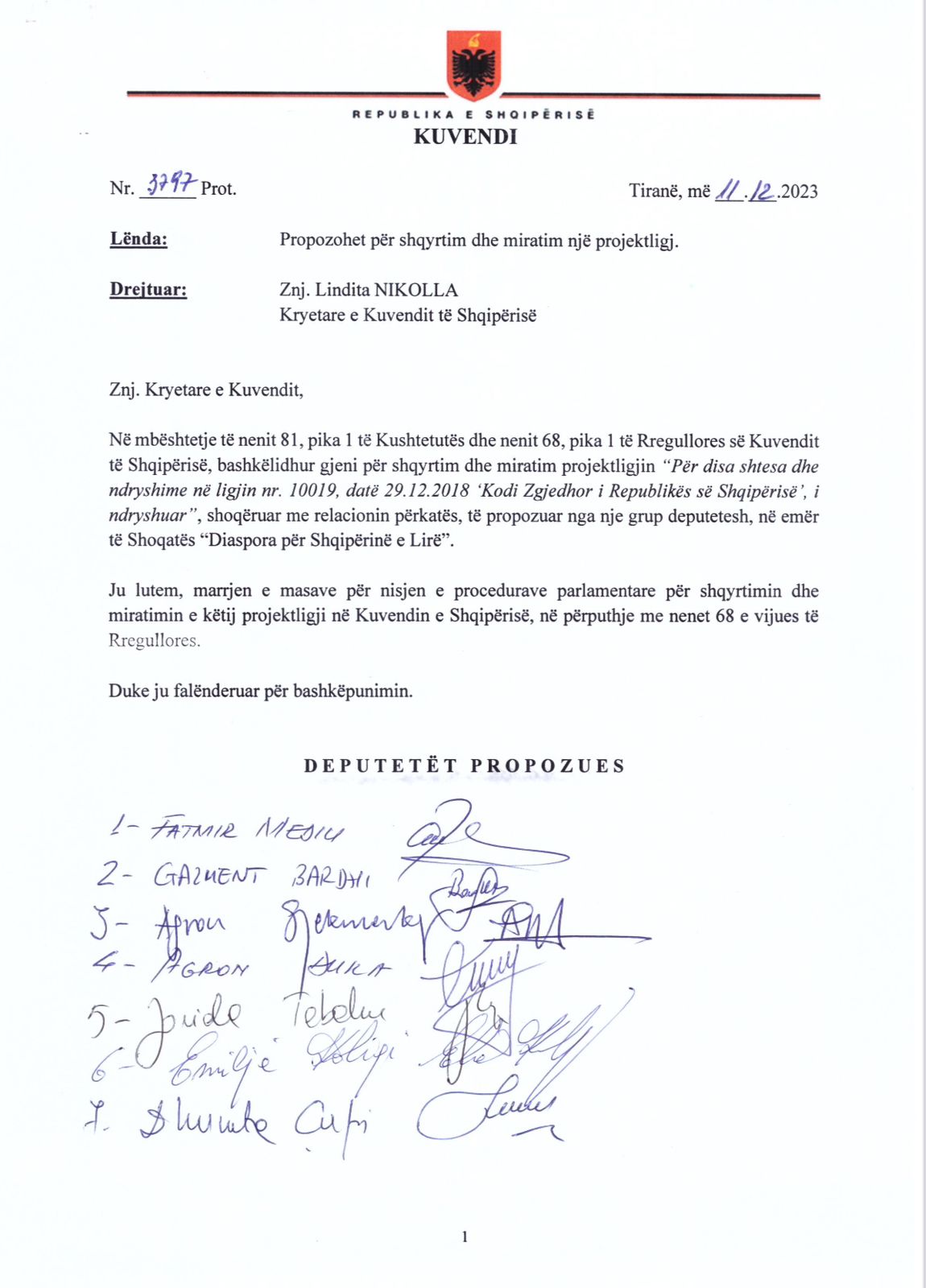 Disa deputetë të opozitës kanë dërguar në Kuvend projektligjin për votën e emigrantëve, duke iu bashkuar kërkesës së përfaqësuesve të “Diasporës për Shqipërinë e Lirë”.