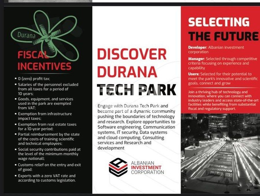 Për këtë le të shpjegojmë pak çfarë po ndodhte në Shqipëri ndërkohë që projektohej ndërtimi i Durana Tech Park. Nga 1 janari i vitit 2026, e gjithë industria e zhvillimit dhe prodhimit të softuerëve në Shqipëri hyri në një regjim të ri tatimor. I gjithë ky sektor u përjashtua nga norma e reduktuar me 5% e tatimit mbi fitimin, duke bërë që të gjitha bizneset e kësaj fushe të kalojnë në një regjim standart me 15% të tatimit mbi fitimin. Rekomandimet e FMN dhe BE për mos të patur privilegje ushtruan një presion pozitiv mbi qeverinë shqiptare, duke bërë që në paketën e re fiskale, edhe këto biznese do të trajtoheshin po njësoj.