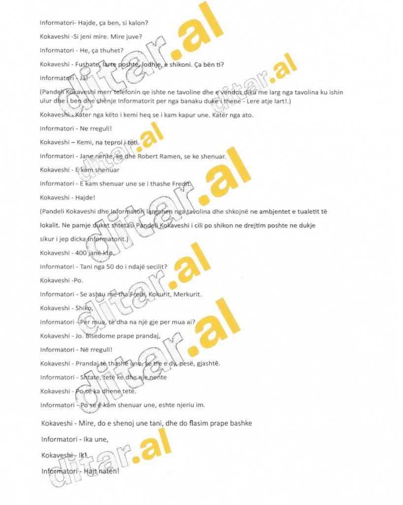Në përgjimin tjetër të Fredi Belerit, ëhstë bashkëpunëtori Pandeli Kokaveshi i cili i jep lekët informatorit për 8 vota të tjera. Informatorin e ka dërguar Fredi Beleri te Kokaveshi, për të mbyllur pazarin e votave.