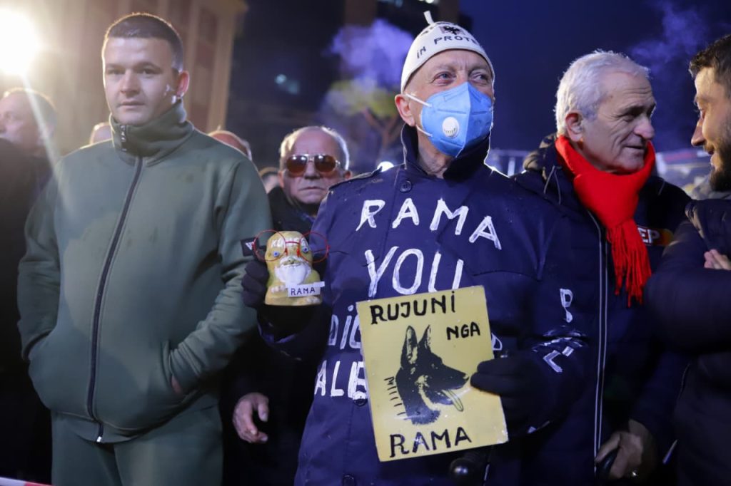 FOTOLAJM/ Rama me “fytyrën” e Ergys Agasit, pankartat “pikante” në protestën e PD para Kryeministrinë