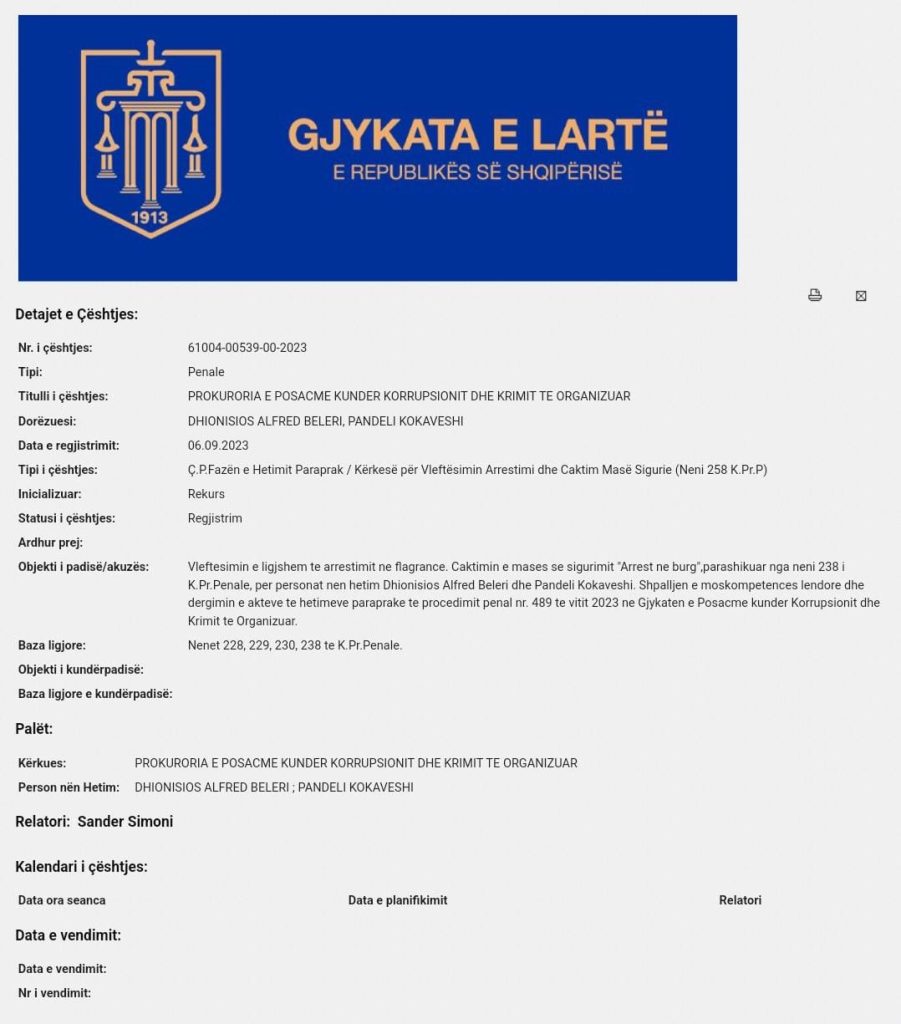Në njërën prej tyre ai kërkon të shpallet i paligjshëm arresti në flagrancë ndaj tij. Ndërsa në rekursin tjetër Beleri kërkon të shpallen të paligjshme përgjimet e kryera nga Prokuroria e Vlorës për lejimin e përgjimit të fshehtë fotografik audio e video të personit të infiltruar.
