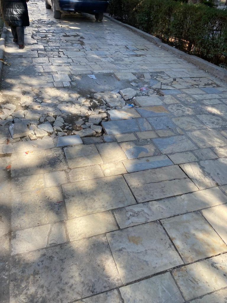 “Kur ishte i asfaltuar, të paktën ecnim lirisht, pa u penguar, ndërsa tani duhet me ec me shumë kujdes, se shkon dhe thyen qafën”, – thotë i moshuari, teksa tregon pllakat e thyera.