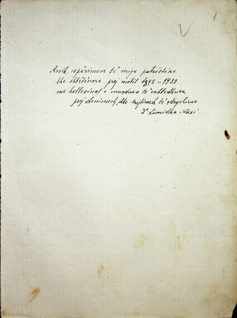 Varianti i historisë së flamurit sipas patriotit Leonidha Naçi, të cilin prezantojmë, gjendet në një dorëshkrim që përmban kujtime të vetë atij. Këto kujtime Naçi i ka shkruar gjatë ose pas vitit 1939, siç e thotë në fletën e parë të tyre, dhe synon të përshkruajë veprimtarinë e tij patriotike prej vitit 1895 deri më 1939. Këtë, siç thotë po ai, e bën që t’ia lërë kujtim të birit, jo për t’u botuar. Kujtimet ruhen në dorëshkrim, në fletë të thjeshta fletoreje, të shkëputura nga njëra-tjetra, shkruar me bojë të zezë. Pasi përshkruan kohën e studimeve, vitet kur jepte mësim në shkolla të ndryshme, burgosjen dhe endjet nëpër Ballkan si mësues e gazetar, përpjekjet për hapjen e një kursi të gjuhës shqipe në Athinë dhe hapjen për pak kohë të një kursi të shqipes në Korfuz, Naçi na informon për çështjen e flamurit (sjellim transkriptimin diplomatik, pa ndërhyrë në tekst):