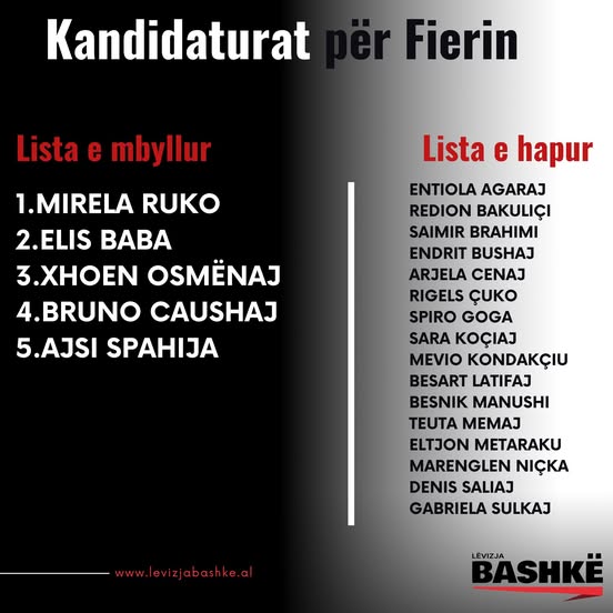 Në Fier, listën e “Lëvizja Bashkë” e udhëheq Mirela Ruko, ndërsa pas saj renditen Elis Baba, Xhoen Osmënaj dhe Bruno Caushaj.