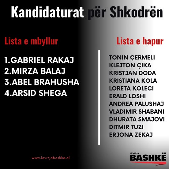 Gabriel Rakaj është i pari në listë në Shkodër, ndërsa Mirza Balaj, Abel Brahusha dhe Arsid Shega plotësojnë listën e mbyllur.