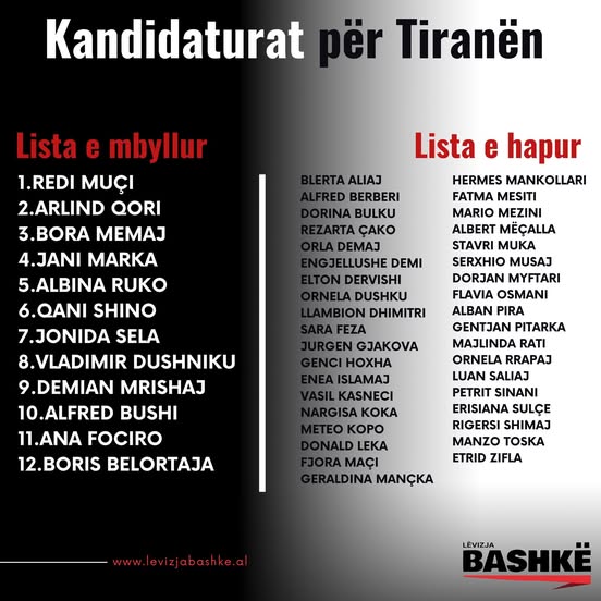 Në Tiranë, listën e kryeson Redi Muçi, ndërsa i dyti është drejtuesi i kësaj force politike, Arlind Qori, i ndjekur nga Bora Memaj dhe Jani Marka.