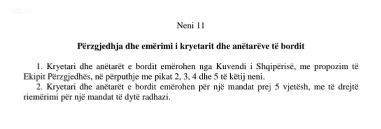 I tillë është edhe rasti i kreut të Entit Rregullator të Energjisë, Petrit Ahmetit, i cili në kundërshtim me ligjin ka kandiduar për një mandat të tretë në krye të këtij institucioni. Ai është në garë së bashku me 3 kandidatët e tjerë: Lorenc Kosta, Maksim Shuli e Artuar Llakaj.