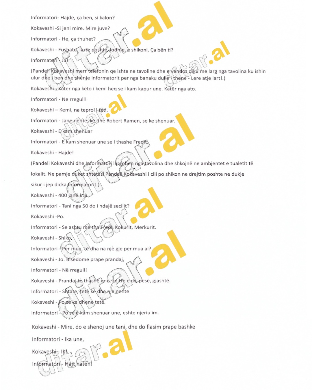 Janë 400 euro që merr informatori për t’i shpërndarë, ndërsa i kërkon Kokaveshit edhe pjesën e tij, por bashkëpunëtori i Belerit i thotë se do flasin sërish.