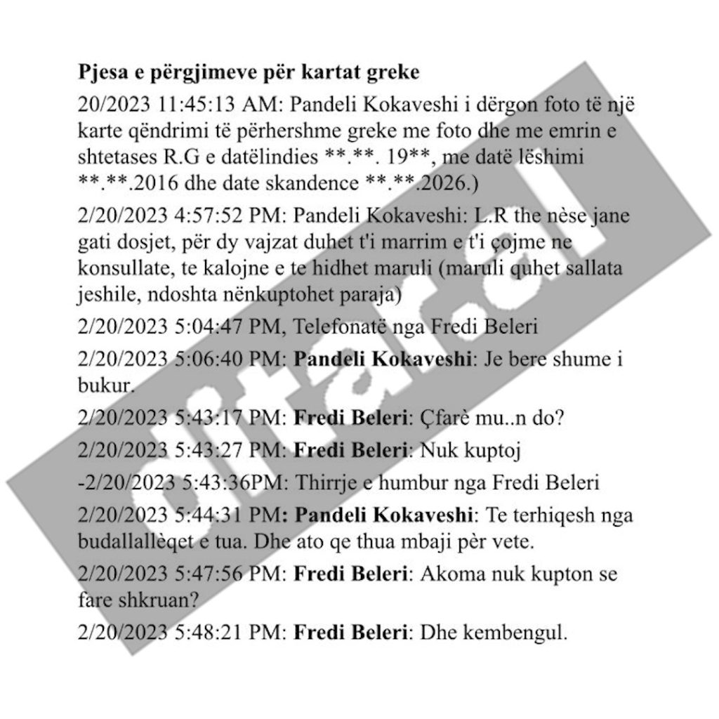 Ndërkohë, Kokaveshi i ka dërguar edhe foto e kartave ID të dy vajzave, të cilat mesa duket jetonin në Greqi dhe do të shkonin në Himarë vetëm për të votuar. Pasi të kalonin konsullatën dhe të votonin për Belerin, do të merrnin edhe lekët.