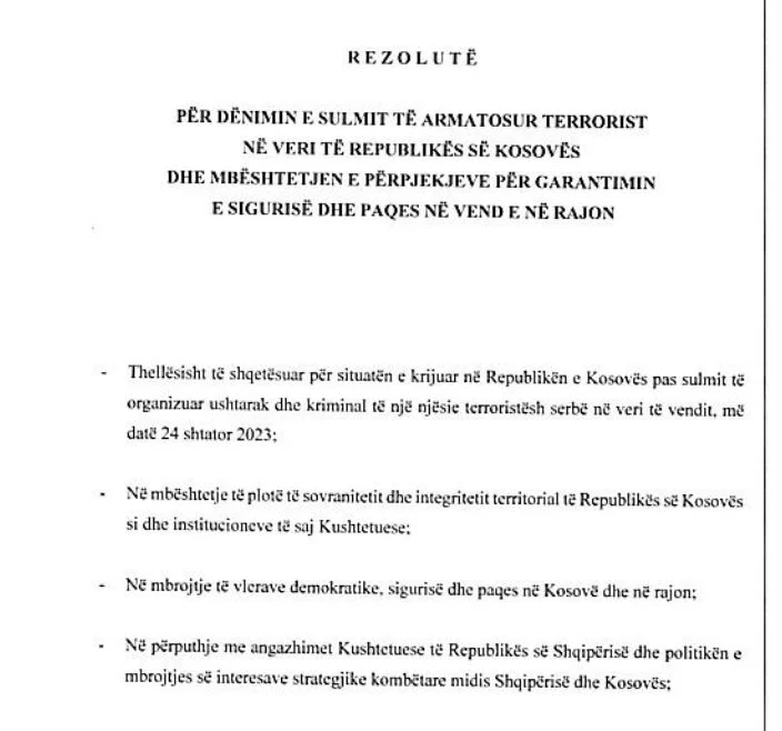 Rezoluta e dorëzuar nga Grupi i PS:
