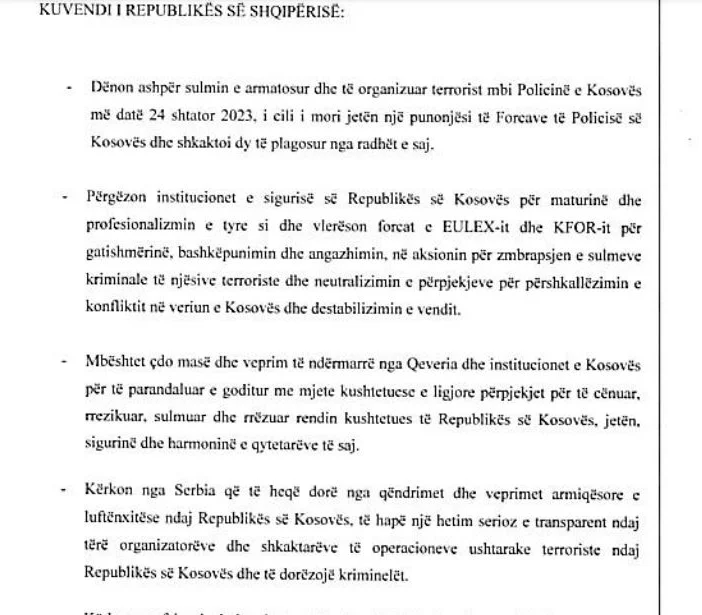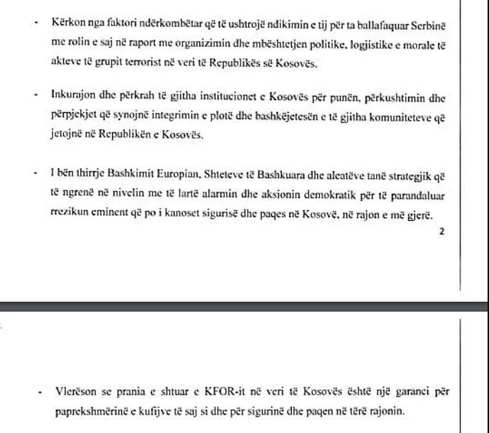 Por ajo që binte në sy brenda kërkesës ishte se në një nga pikat kërkohej që Serbia të hapë një hetim transparent për organizuesit e sulmit në Kosovë dhe të dorëzojë kriminelët. Po ashtu, PS kërkonte që KFOR-i të shtojë trupat në veri.