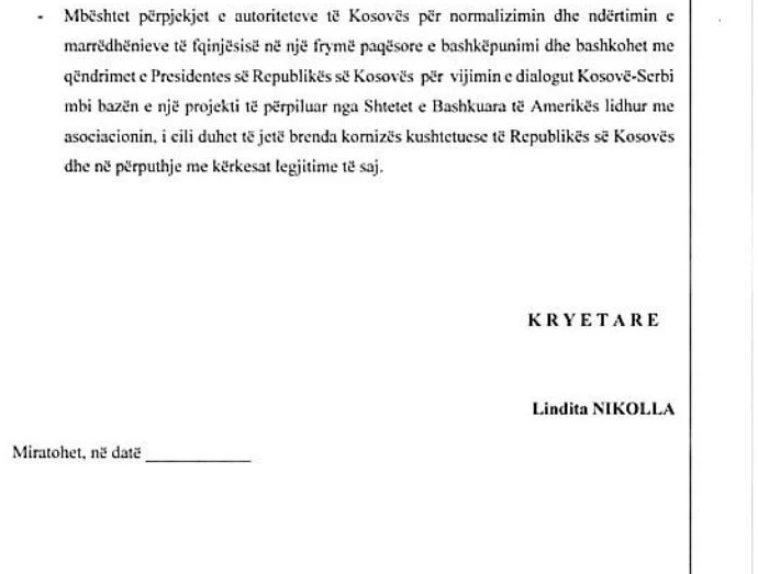 “Ne dhe PS do të mbështesim qëndrimin e Kosovës, do të duhet të ketë një hetim ndërkombëtar. Nuk mundet që rezoluta e Kuvendi të Shqipërisë, të pasqyrojë nën të, besoj duhet të ketë qenë një lapsus edhe një qëndrim nga i cili grupi parlamentar i PS duhet të tërhiqet që ne të pasqyrojmë qëndrimin e Serbisë në rezolutën tonë.