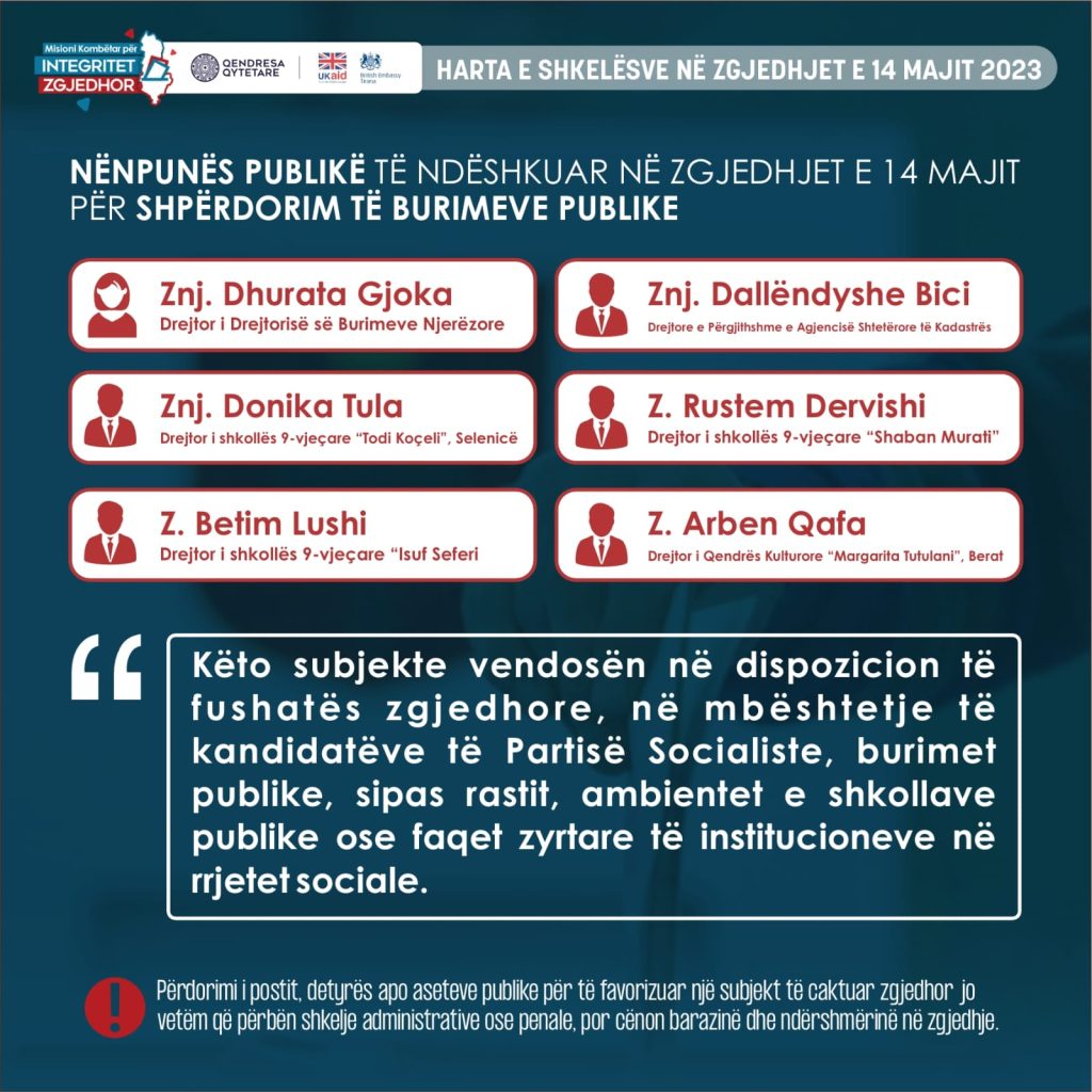Na ndajnë më pak se 1 vit nga Zgjedhjet Parlamentare, prandaj kontributi i çdo strukture ka rëndësi, për të mbajtur Shkollat, Kopshtet, Spitalet, zyrtarët dhe paratë publike larg përdorimit për qëllime elektorale. Çdokush që do të vendosë partinë përpara detyrës publike do duhet të përballë drejtësinë.