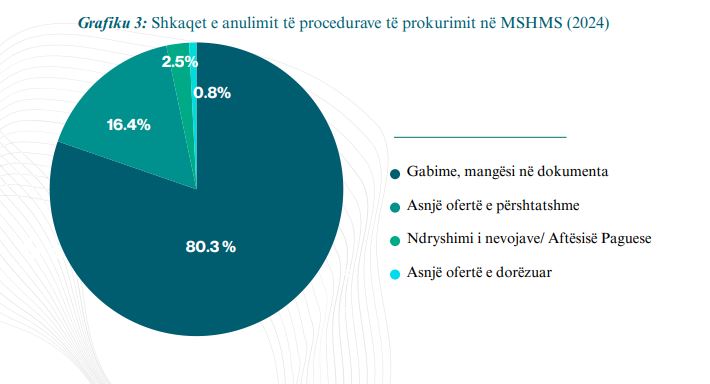 Madje, sipas raportit, 80% e procedurave të anuluara u shkaktuan nga gabime të stafit të Ministrisë së Shëndetësisë, duke nxjerrë në pah paaftësi ose neglizhencë në hartimin e dokumentacionit të tenderit.