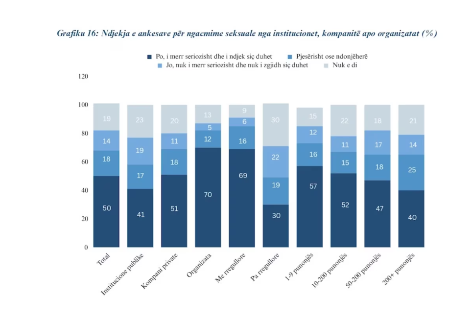 “Pavarësisht se fenomeni është i përhapur, denoncimi është në nivele të ulëta. 80% e personave punëmarrës, që kanë deklaruar se janë janë ngacmuar në vendin e punës nuk e kanë denoncuar fenomenin”- u shpreh për Zërin e Amerikës Alma Lahe, menaxhere projekti e organizatës Together for life.