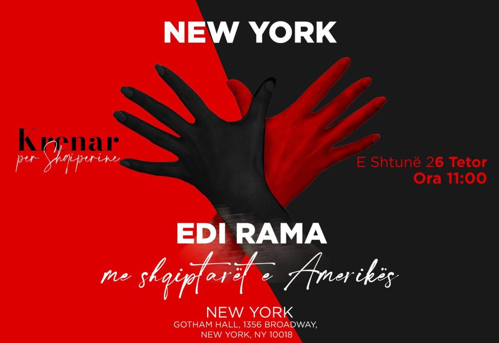 Kryeministri Edi Rama ka vendosur t’i rikthehet takimeve me Diasporën shqiptare, pasi në 26 Tetor do të jetë në New York për t’u takuar me emigrantët shqiptarë në Shtetet e Bashkuara të Amerikës.