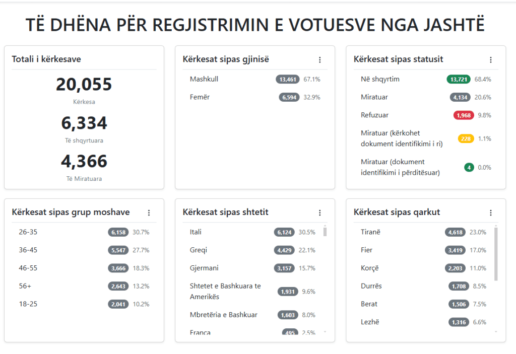 Sipas të dhënave të gjeneruara, rezulton se në këto gjashtë ditë, kohë kur ka filluar dhe procesi, janë paraqItur 20,055 kërkesa.